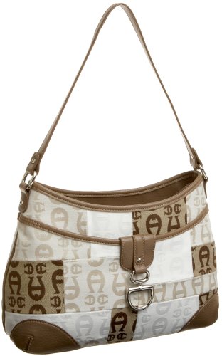 The A-logo Patchwork bag from Etienne Aigner is a classic, casual bag that can be worn with anything. The logo-printed patchwork design offers subtle sophistication with faux leather trim and piping. The inside pockets keep necessities in place and organized.